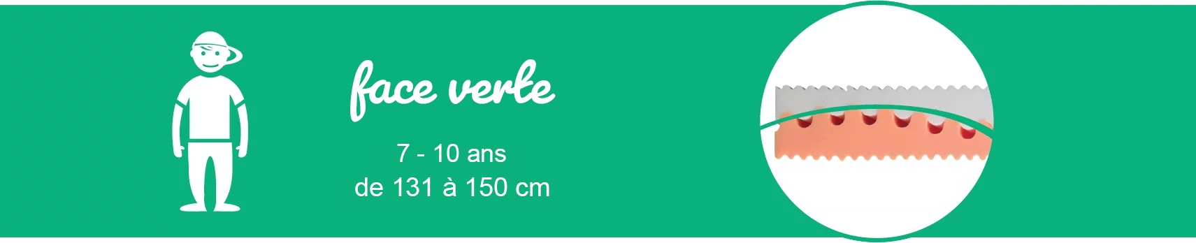 • Étape 3 (7 à 10 ans) : Face Verte. On retourne le matelas pour passer sur la face plus ferme. Le soutien est renforcé pour accompagner le pic de croissance de la pré-adolescence.