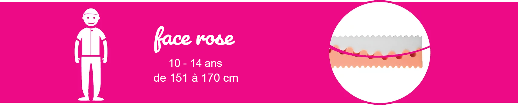 • Étape 4 (10 à 14 ans) : Face Rose. Un dernier pivotement tête-bêche pour que les zones de fermeté correspondent parfaitement à la morphologie d’un adolescent, garantissant un alignement optimal de la colonne vertébrale.